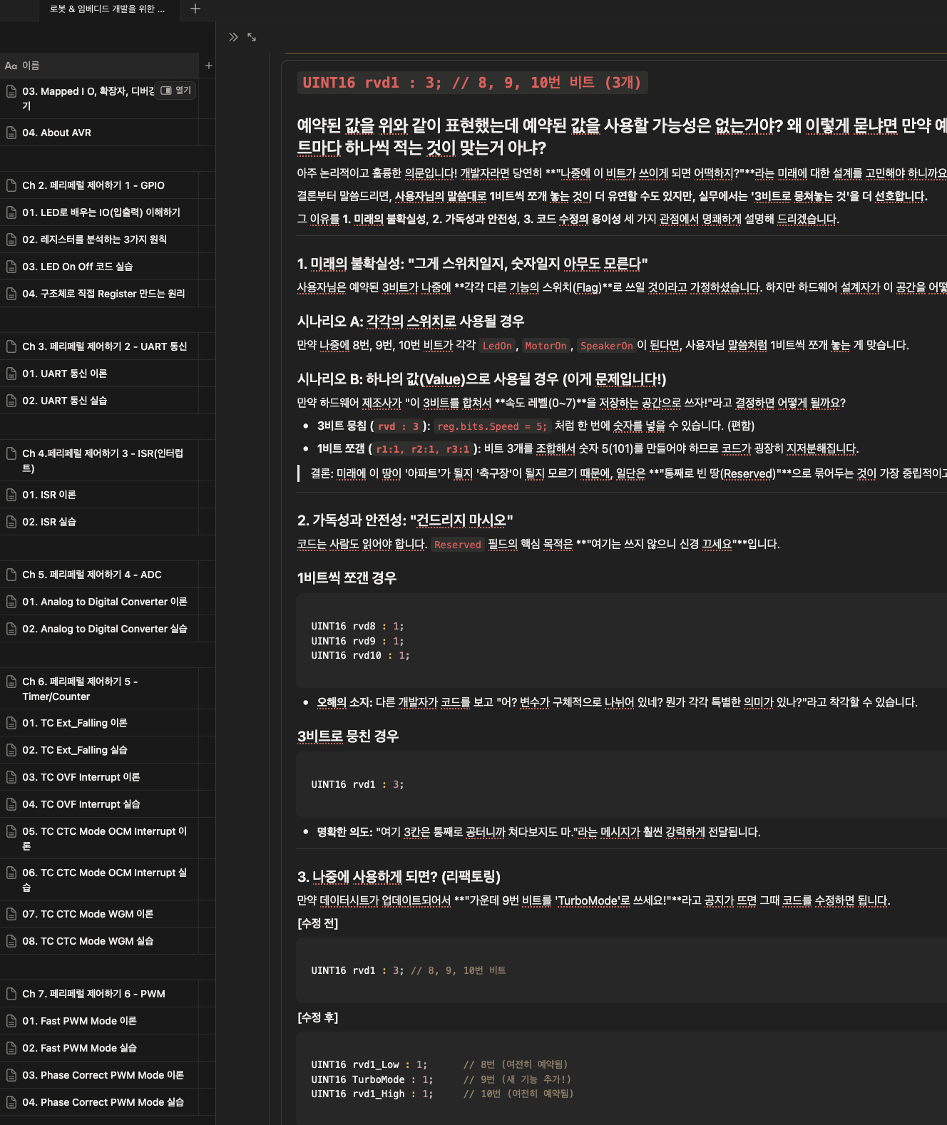 세번째는 AI에 대한 것이다. 사실 강의를 들으면서 초반에 챌린지가 문제가 아니라 강의 내용이 너무 어려워서 포기해야 하나 하는 생각이 들기도 했다. 이해도 못하는 것을 억지로 따라간다고 시간만 버리는 것이 아닌가 하는 생각이 들었기 때문이다. 하지만 강사님께서 제공해 주신 노트북LM과 개인적으로 구독하고 있던 AI 서비스들을 활용해서 무사히 강의를 이해하며 진도를 나갈 수 있었다. 무엇보다도 실무적인 팁들이 구석구석 녹아있는 실습예제들이 있어서 예제들을 분석해가는 과정에서 임베디드를 강의에서 설명한 것 이상으로 깊이 있게 배워갈 수 있었다.