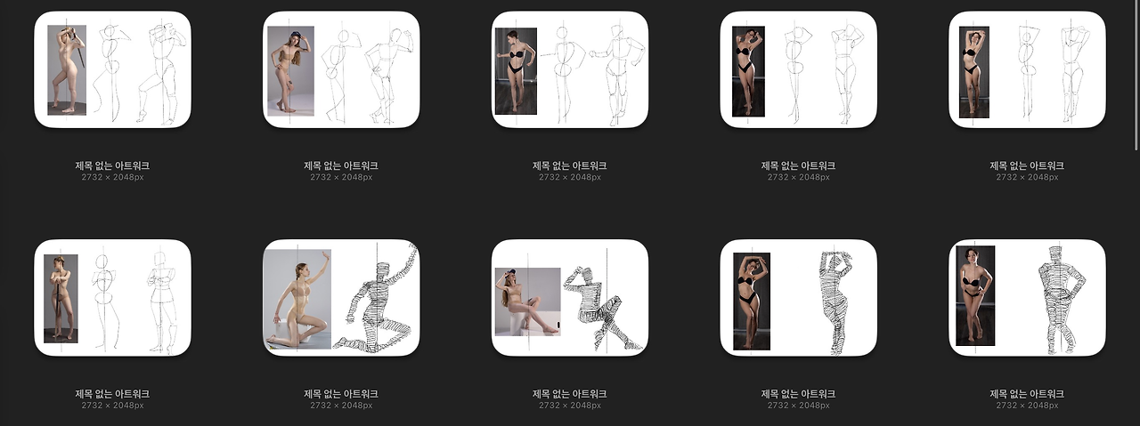 새삐 강사님을 X(구 트위터)에서 본 적이 있다. 거기서도 인체 팁을 주시는데, 그 때도 친절하고 알기 쉬운 설명을 해주셨고 나는 원래 잘 그려진 인체에 큰 매력을 느끼는 편이기 때문에 그걸 상당히 인상적으로 생각하고 있었다. 그렇게 기억 한 켠에 접어넣어두었었는데, 모처럼 패스트 캠퍼스에서 환급 이벤트를 한다길래 뭘 좀 들어보나.... 하고 강의 목록을 훑다보니 익숙한 닉네임이 보였던 거지! 그래서 다른 강의와 조금도 고민하지 않고 이걸 골랐다. 사실 이 강의가 아니었다면 이번 환급 이벤트는 아예 놓아주었을 것 같기도 하다. 이전에 데일리 미션할 때도 계속 썼지만 연말이라 약속(그것도 2박 3일 여행...)이 많아서ㅠㅠ 맨날 숙소에서 강의 듣기 친구 집에서 강의 듣기 애들 술 마시는데 난 옆에서 강의 듣기 애들 보드게임 하는데 나는 옆에서 강의듣기 하는 엄청난 상황 연속 발생 참말사건이었기 때문에... 암튼 그걸 감수할 만큼 좋은 강의였고ㅋ 내가 원하던 인체!! 비율!! 뭐 이런 것들을 배우고 있어서 좋다. 다른 그림 강의도 몇 개 들어봤지만 실질적으로 당장 효용성 있다는 느낌이 든 건 처음인듯. (물론 다른 강의들도 끈질기게 열심히 들으면 분명 도움이 될 텐데 클립 하나가 1시간씩이라 좀 마음의 준비가 너무 필요해... 이건 가끔 긴것도 있지만 대체로 10~20분 정도에서 끝나서 좋다.) 이 효용감을 기반으로 앞으로도 쭉 끌고가볼 생각...!!