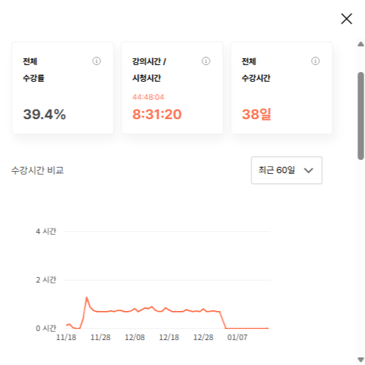 강의시간이 이렇게 보니 정말 1월 1일이 되자마자 곤두박질쳐서 너무 민망쓰하고 ... 그러네...ㅎ ㅎ)>